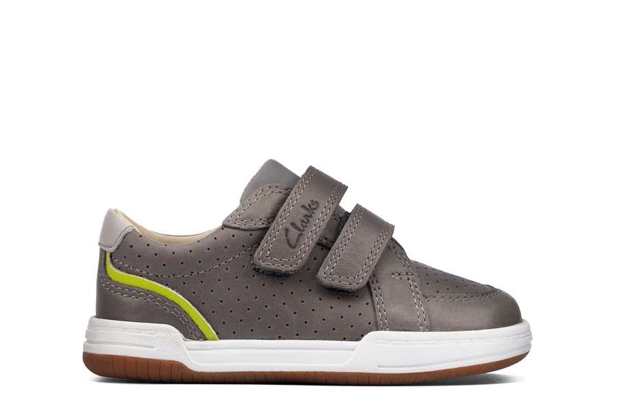 These sports casual shoes from Clarks are crafted from a brown leather features mustard coloured accents and micro perforations. The double riptape fastening provides a secure fit whilst allowing for easy on and off. With flex grooves in the durable sole unit, these shoes are incredibly lightweight and perfect for everyday wear. Available in whole and half sizes and different widths. UPPER MATERIAL Leather. LINING MATERIAL Textile. SOLE MATERIAL Mixed. FASTENING TYPE Riptape. REMOVABLE INSOLE No