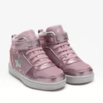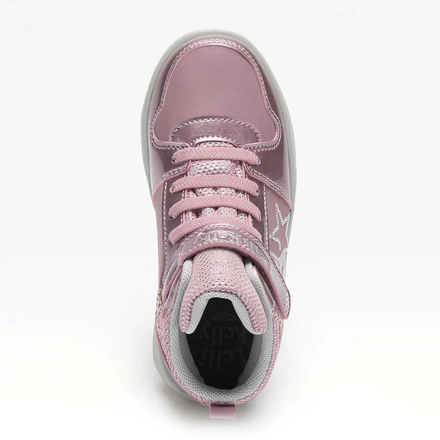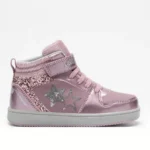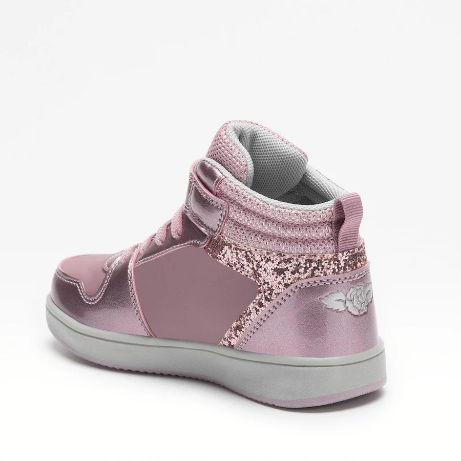 Indulge in the luxurious style and sophisticated design of this Lelli Kelly 4440 Grace Boot in Pink. This high-top ankle boot exudes personality with its water-resistant synthetic leather upper adorned with glossy patent overlays and dazzling glitter panels. The sequin star detail adds a whimsical touch, while the glitter-specked collar provides both comfort and elegance. The elasticated laces and Velcro strap ensure a secure fit, and the platform sole adds subtle height for a statement-making look. Give your young fashionista a touch of everyday luxury with this functional and stylish boot.