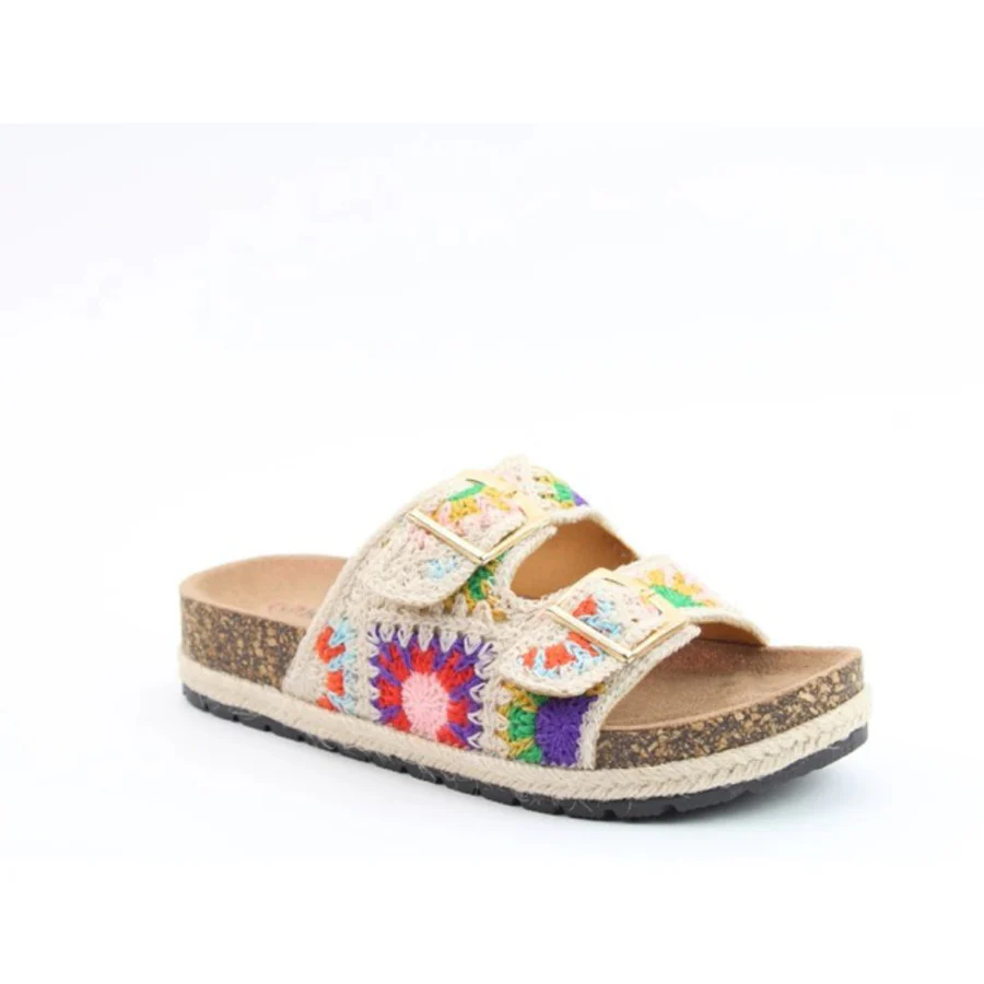 Welcome to our fabulous new season style Hyde. This vegan friendly bio-sandal offers super style and great comfort. The stitched upper features a colourful design whilst the twin-buckles can be adjusted for extra fitting. The cork-inspired outsole with jute surround provides a blend of casual elegance and everyday wear-ability. Ideal for warm-weather outings, Hyde delivers breathable comfort and a soft contoured foot-bed for all day support.