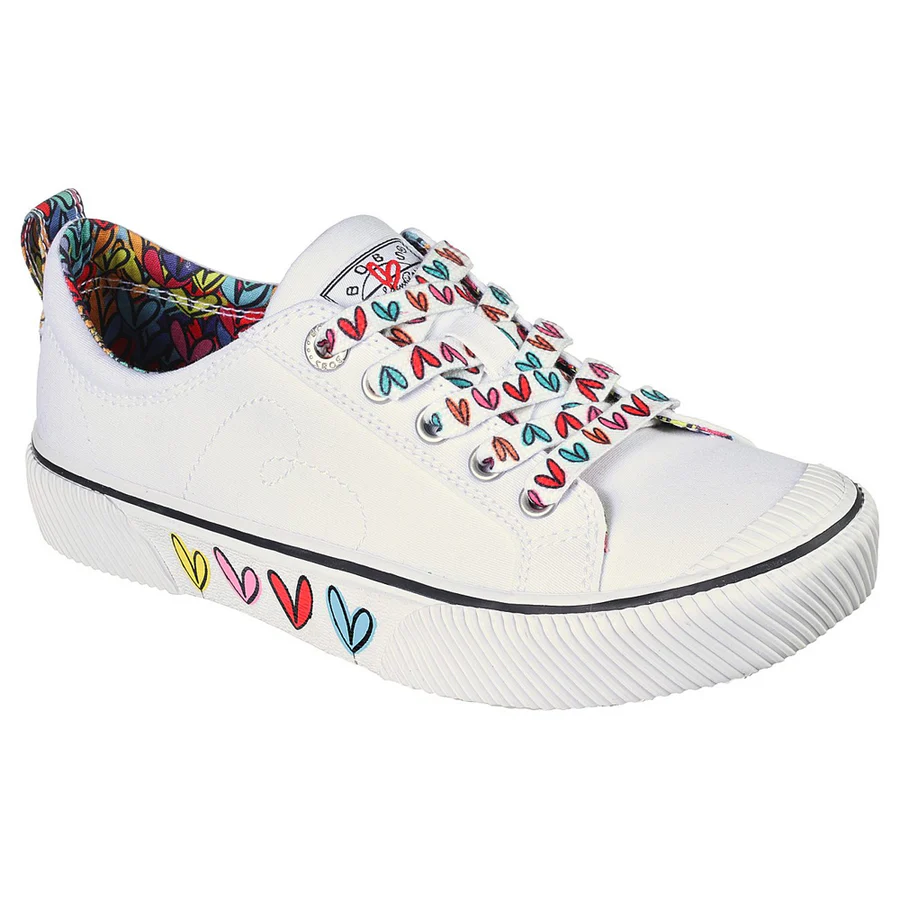 Internationally renowned muralist James Goldcrown brings his iconic #Lovewall heart designs to Skechers in this inspiring collaboration. Art and love makes the perfect pair in the Skechers x JGoldcrown: BOBS® from Skechers B Wild – Love Only shoe. This sneaker features the artist’s signature design on the laces and midsole with a lace-up canvas upper and cushioned Memory Foam insole.